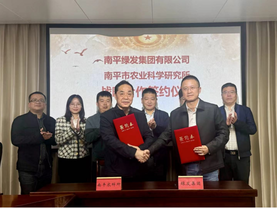 11月3日,綠發集團與南平市農業科學研究所舉行戰略合作簽約儀式。綠發集團黨委書記、董事長魏苑平,黨委副書記涂洪彬,南平市農業科學研究所書記、副所長劉端華,以及雙方相關部門負責人出席簽約儀式。